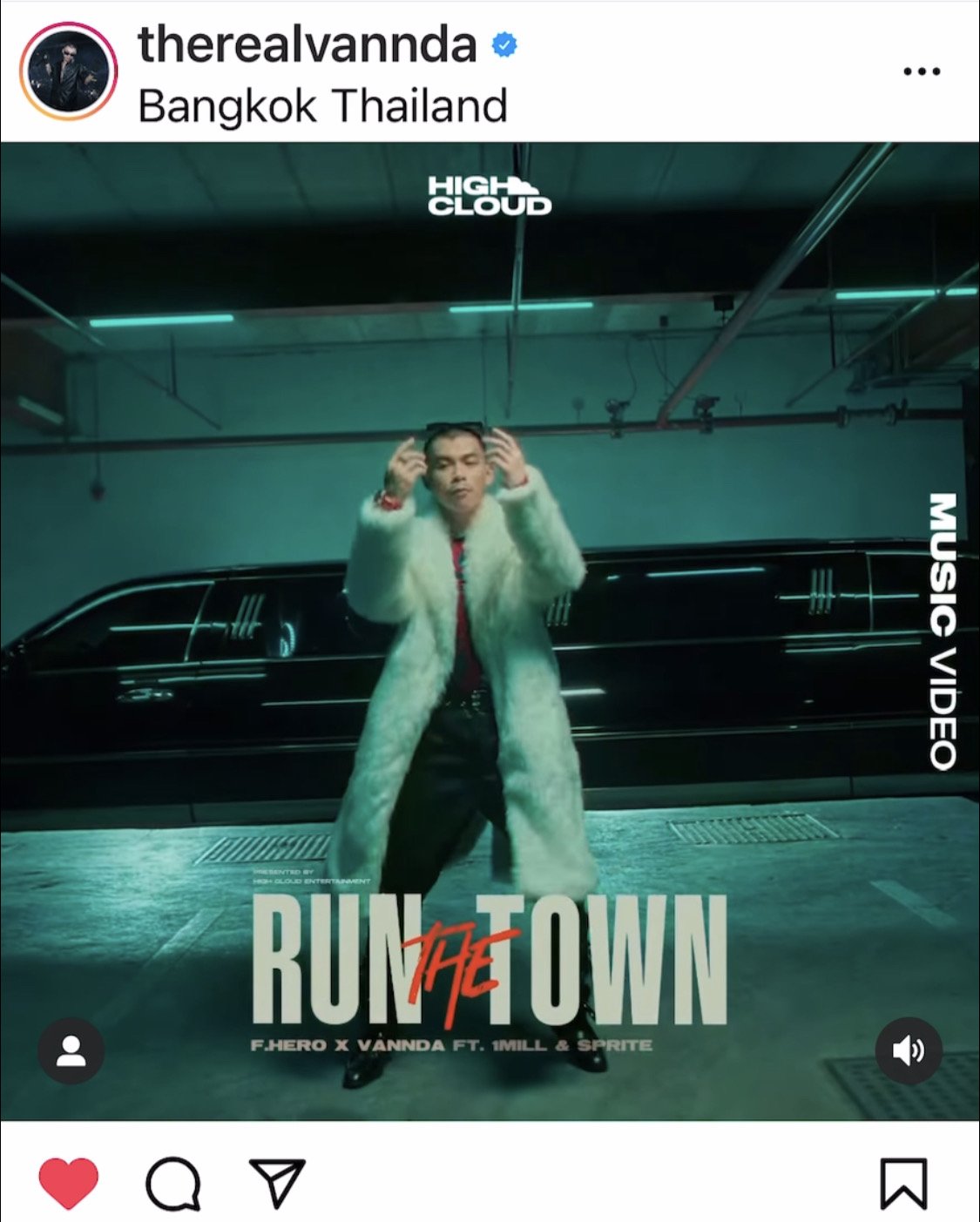 ยอดวิวทะลุล้านวิวภายในไม่กี่ชั่วโมงกับผลงานเพลงใหม่ของ Rapper ชื่อดังที่มาร่วมงานกันของ F.HERO x VannDa Ft. 1MILL & SPRITE บอกได้เลยว่าทุกท่อนเพลงคือฮิตติดหูจนร้องตามกันได้ทั่วเมือง “น้ำหอม Dior มันอยู่ที่คอ Gucci มันอยู่ที่เอว…” โดยเพลงนี้ได้เชิญ Rapper ชื่อดังจากเขมร Vannda มาร่วมงานด้วย ใน MV เปิดตัวต้อนรับ Vannda ได้อย่างสุดอลังการณ์มาก ติดตามชม MV “RUN THE TOWN” ได้ทางช่อง YouTube : Hi Cloud Entertainment